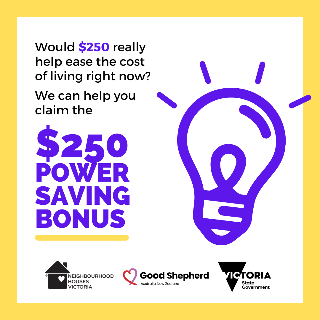 Eligible households can apply for the new $250 Power Saving Bonus now. Applications are open from 1 July 2022 until 30 June 2023. The Bonus is available to all Victorians households who visit the Victorian Energy Compare website or engage with an energy affordability service through one of our participating community outreach partners.