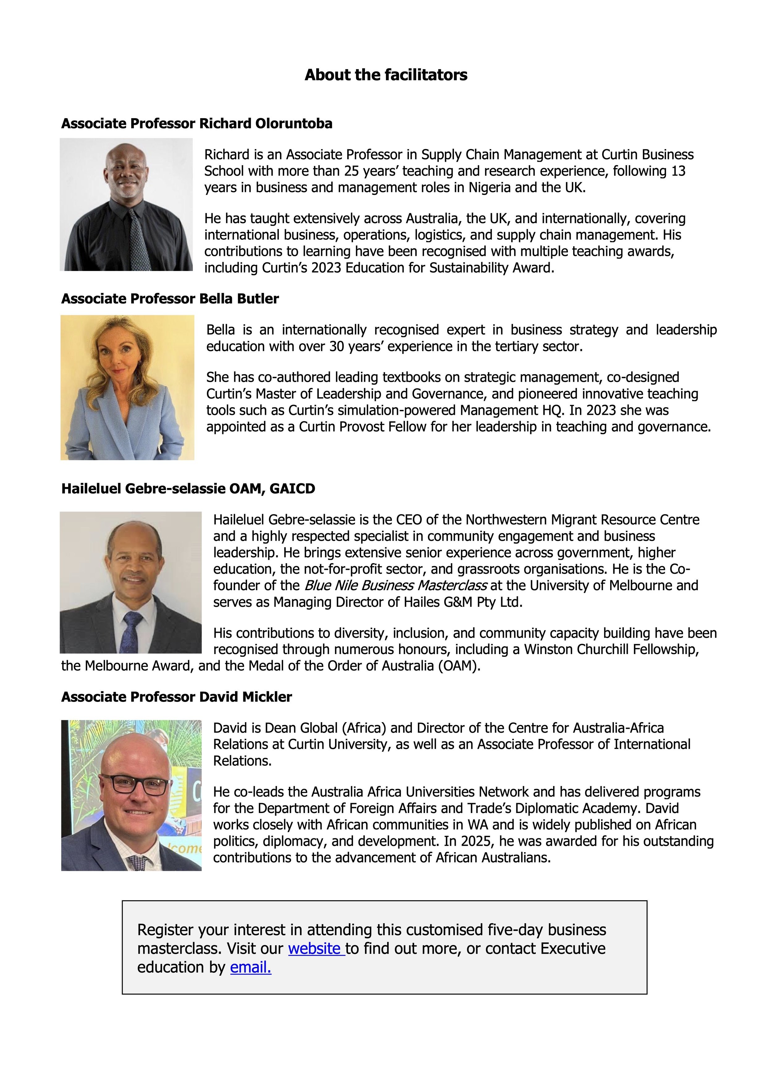 Provider: Curtin Executive Education in partnership with Curtin’s Centre for Australia–Africa Relations.